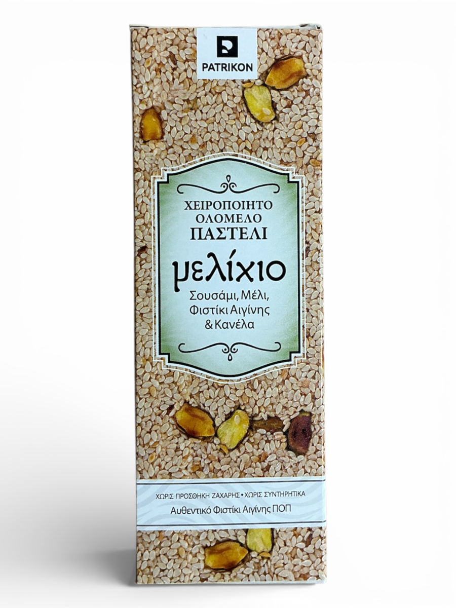 Fabriquée à la main selon la recette traditionnelle grecque, cette douceur naturelle marie le croquant du sésame et la richesse du miel grec pur, sublimés par la pistache d’Aegina AOP et une touche épicée de cannelle.