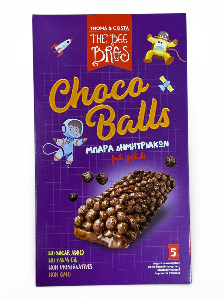 Découvrez les barres de céréales Choco Balls au miel et chocolat de THE BEE BROS ! De délicieuses barres croquantes et légères à base de céréales soufflées et de miel pur grec, enrobées d’un savoureux chocolat. Sans huile de palme, sans conservateurs et sans sucres ajoutés, elles sont parfaites pour le goûter des enfants ou une pause saine et gourmande.