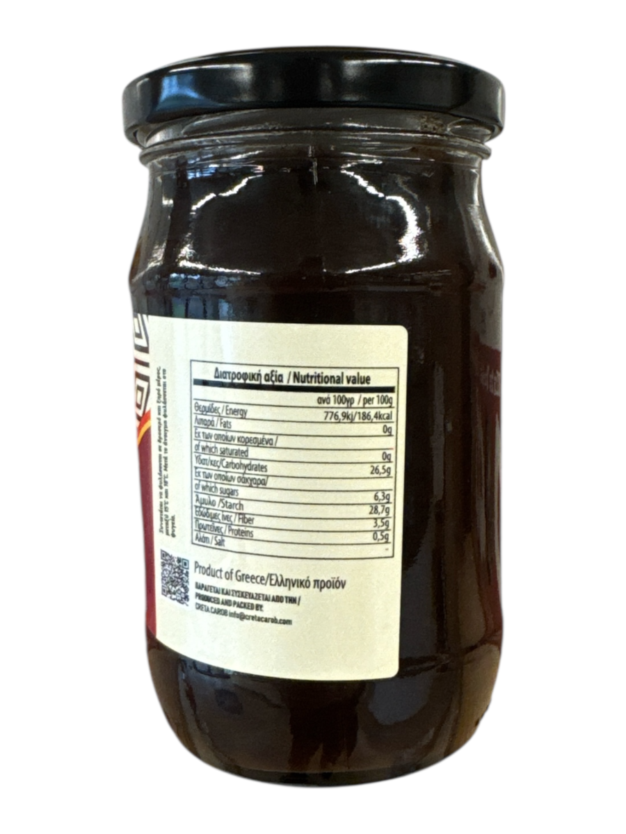 La confiture de caroube Creta Carob est une extraordinaire et originale pâte à tartiner sucrée fabriquée à partir d'ingrédients traditionnels 100% naturels.