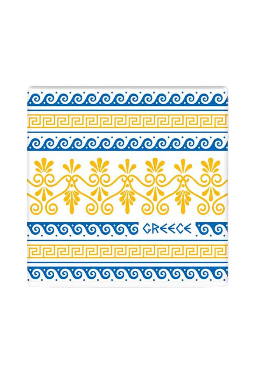 Ce dessous de verre en céramique Ancient Greece met en avant le méandre grec, symbole majeur de la Grèce antique, associé à des motifs décoratifs inspirés de l’art hellénique.