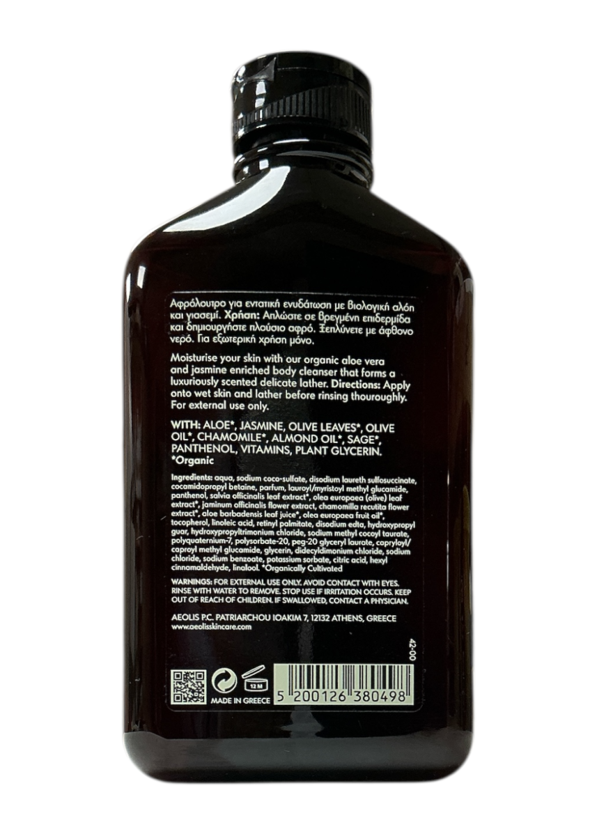 Offrez-vous un moment de détente et de fraîcheur avec le gel douche hydratant AEOLIS au jasmin et à l’aloe vera bio. Sa formule douce, enrichie en extraits naturels et huiles végétales, nettoie la peau en respectant son équilibre. Le jasmin apporte un parfum délicat et apaisant, tandis que l’aloe vera et l’huile d’olive hydratent et protègent la peau. Ce gel douche contribue à renforcer la fermeté cutanée tout en procurant une sensation de confort et de bien-être. Adapté à tous les types de peau, il laisse votre peau douce, souple et délicatement parfumée, pour un rituel de soin quotidien alliant efficacité et douceur.