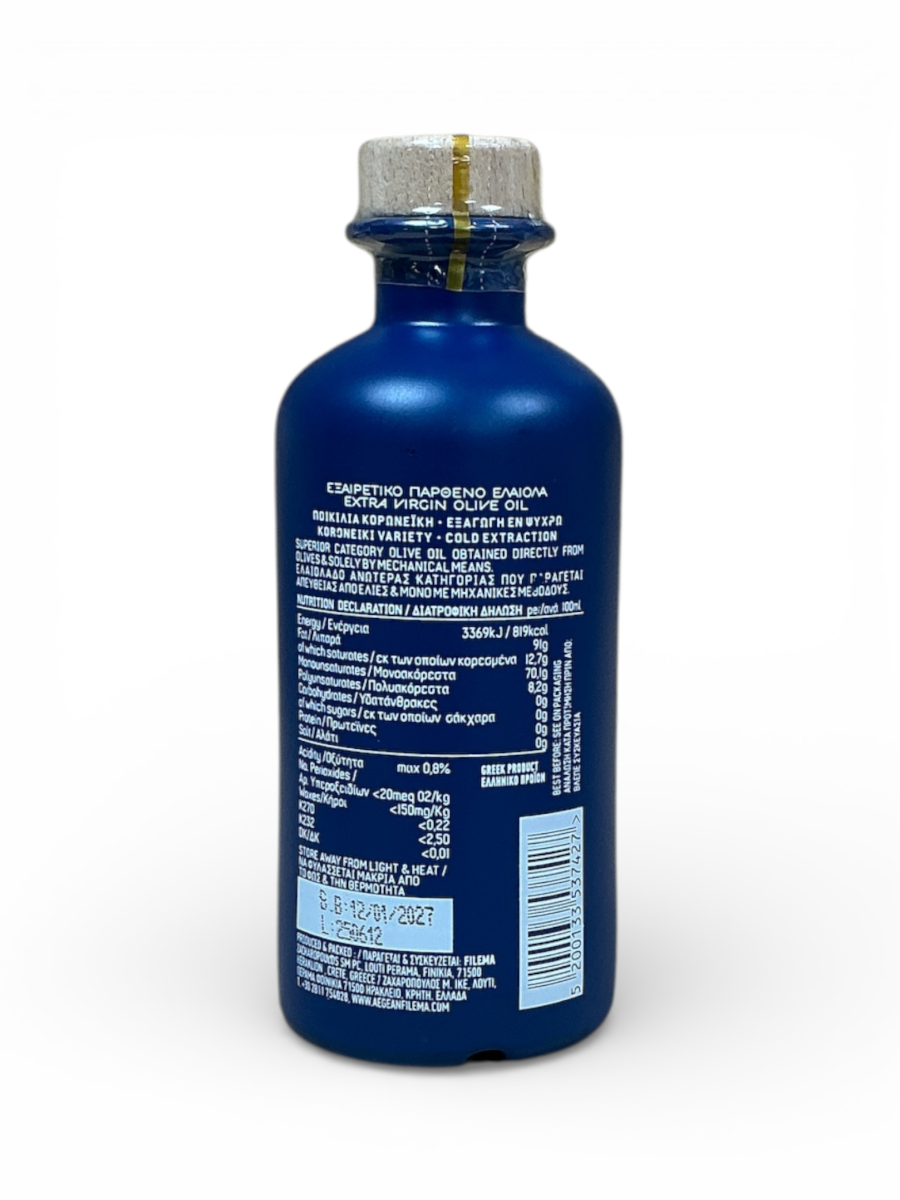 Elle est obtenue directement à partir des olives et uniquement par des procédés mécaniques, conformément aux méthodes traditionnelles utilisées en Grèce pour produire une huile d’olive de qualité.