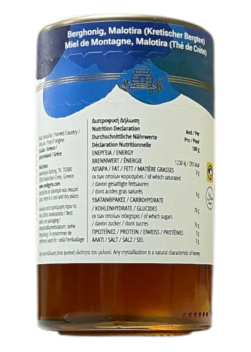 Vous allez retrouver un miel avec un goût unique et exceptionnel en Édition Limitée avec une saveur caractérisée par son  doux parfum et ses éléments nutritionnels. Le Miel de Malotira provient de la haute montagne crétoise. Il est un des plus rares miels crétois. C'est la raison pour laquelle il est présenté en édition limitée.