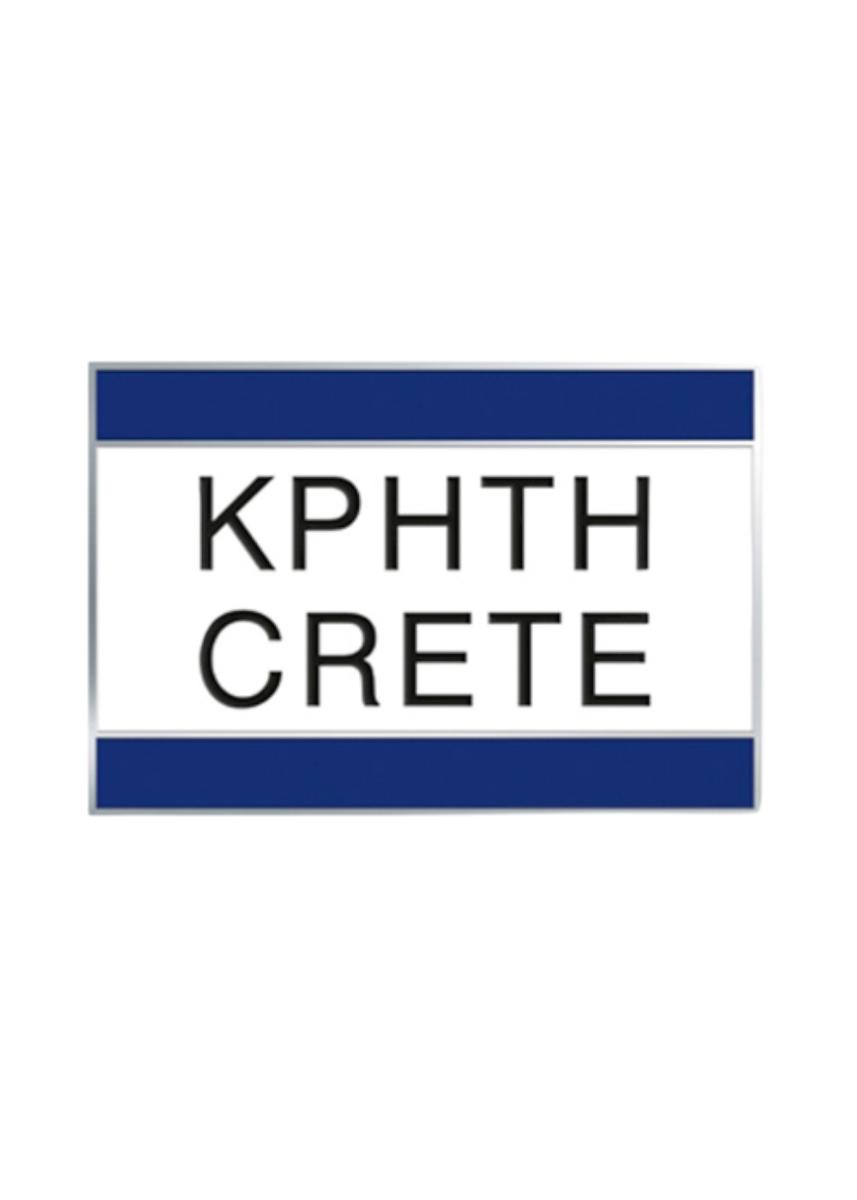 Ce pin’s panneau crétois ΚΡΗΤΗ “CRETE” est inspiré des panneaux de signalisation routière grecs que l’on trouve à l’entrée des régions et îles.